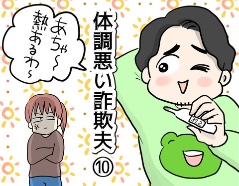 体調悪い詐欺夫④ 最近妻のミサキが冷たい・・・そんな悩みを抱える夫、ゴロウなんとかして妻に優しくしてもらいたい!!!とあることを思いつきます…(全26話)第一話はこちら 前回のお話はこちら いいよなぁ!風邪くらいでゆっくり休める奴はよぉ!殺ぅ!妻に優しくされたいなら妻に正し ... 2023年03月22日 続きを読む