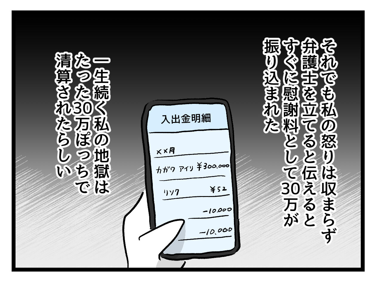 相手からたったこれっぽちの金額で、こっちは一生心殺されて生きていかなくてはならないです。